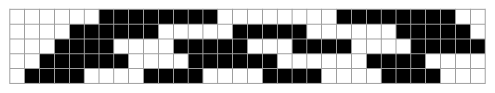 These monotonic Gray codes can be efficiently implemented in such a way that each subsequent element can be generated in $O(n)$ time. The algorithm is most easily described using coroutines, and an example in Python can be found in Appendix A. Examples of the Gray codes generated by this algorithm when $n = 5, 6$ are shown in Figure 5 and Figure 6.
